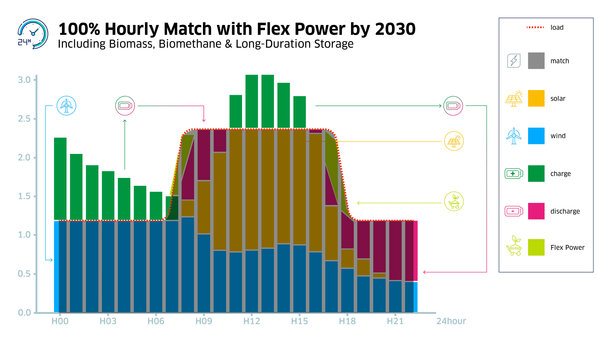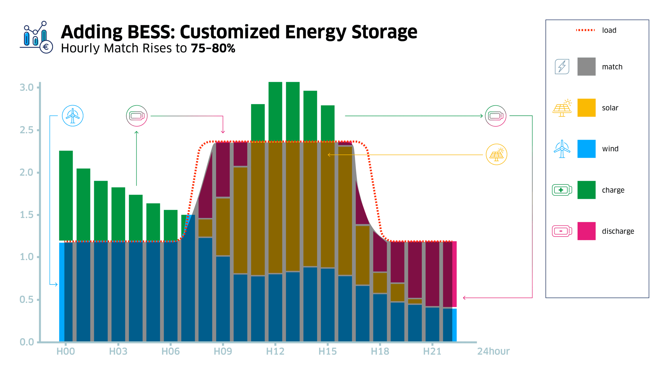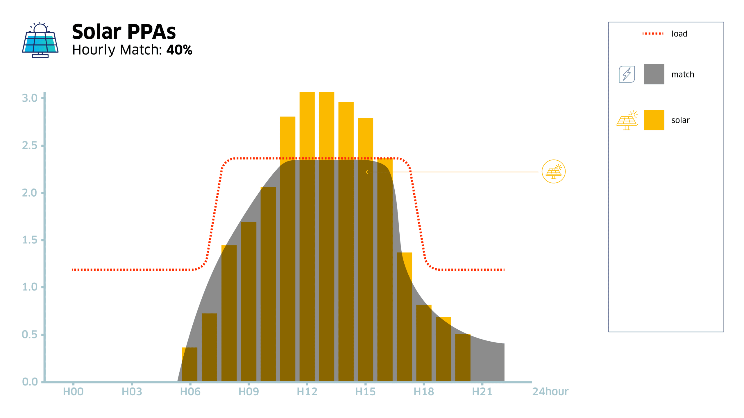 Renewable energy supply is intermittent—solar peaks at midday while wind may surge at night—while a company’s electricity demand follows its own curve. This mismatch creates gaps when clean power isn’t available, and surpluses when generation exceeds demand.